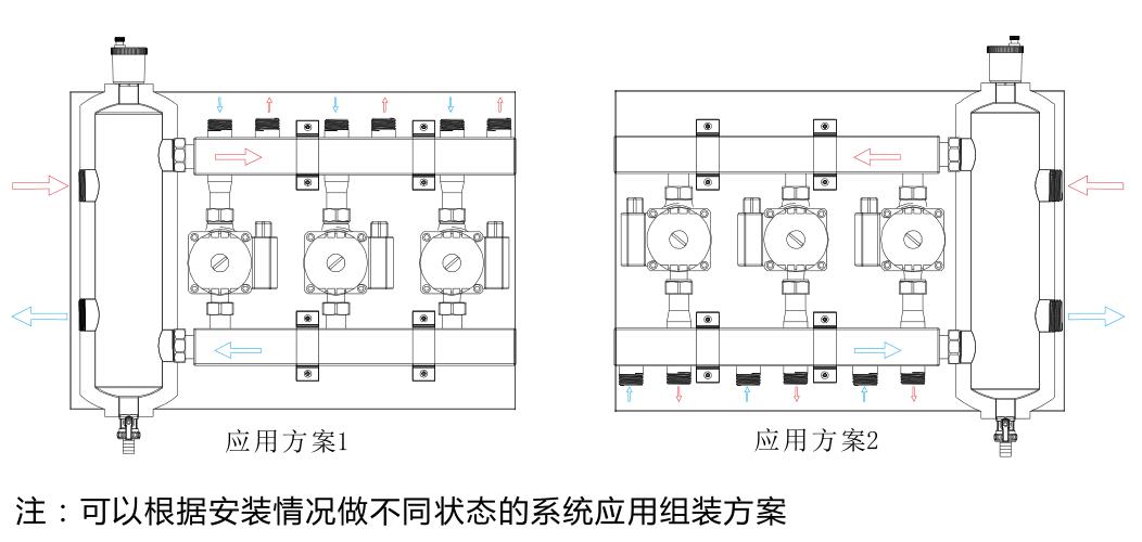 在大戶(hù)型采暖中容易出現(xiàn)水流量不匹配現(xiàn)象。利用博容去耦罐集成系統(tǒng)可以解決此問(wèn)題,打造出一套舒適、穩(wěn)定的采暖系統(tǒng)。推薦別墅,復(fù)式樓等大面積采暖使用。 每路帶實(shí)鋪面積不超150平米.